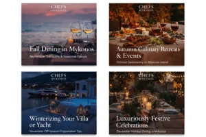 Dining with us is more than a meal — it’s a refined culinary journey designed for those who value exceptional taste and discreet, personalized service. From intimate villa dinners to sunset celebrations and private events, our expert chefs curate unforgettable dining moments in Mykonos.